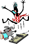 Maus im Haus, Hausfrauenschreck! Stellt die Falle auf und fangt sie weg! Doch die Maus hat studiert, wie das Ding funktioniert und klaut frech aus der Falle den Speck. |